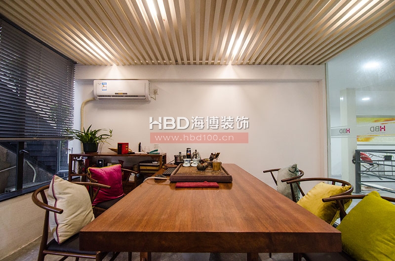 項目位于廣州市天河區紅專廠創意園,上下2層,中空挑高。昔日的罐頭廠,如今的羊城“紅專廠創意園”,公園式的辦公環境。在經過海博裝飾設計部多次討論后,比較終將風格定位為LOFT風格,與園區風格相融合。一樓入口處為前臺、休閑臺球區、大會議室,開放式辦公區,二樓為各部門經理辦公室、老總室、VIP茶室等。
